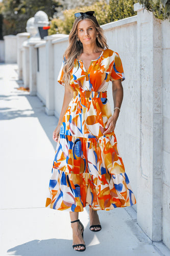 Abstraktes Maxikleid mit geschlitztem Ausschnitt