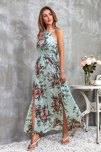 Ärmelloses Blaues Hoher Ausschnitt Maxikleid