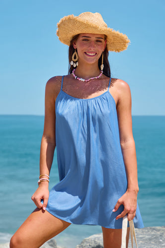 Ärmelloses Elastische Taille Mini-Strandkleid