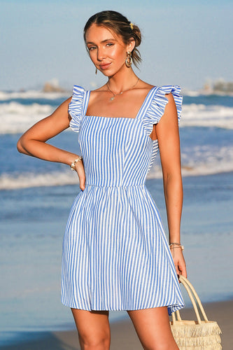 Ärmelloses Gestreiftes Quadratischer Ausschnitt Minikleid