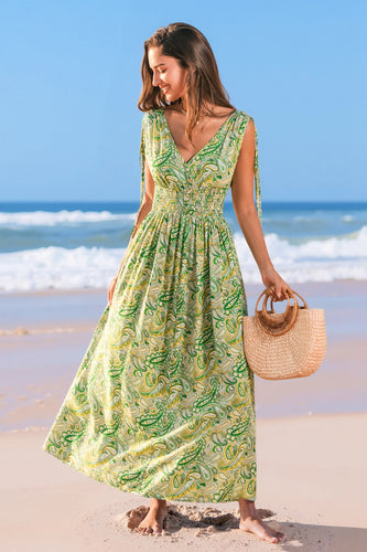 Ärmelloses Midi-Wickelkleid mit Paisleymuster