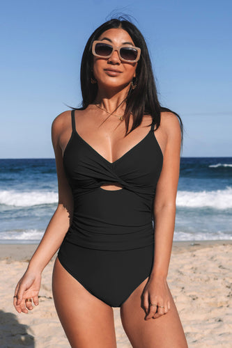Zeitloser schwarzer Badeanzug mit Rüschen