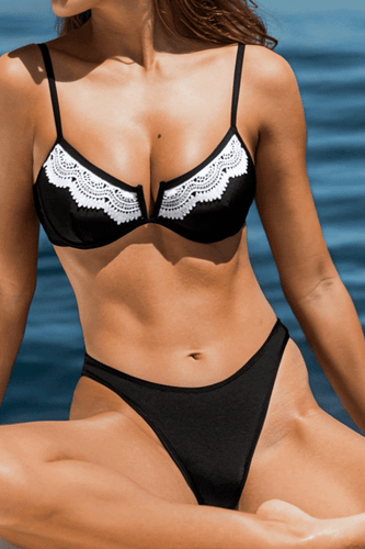 Schwarzes Abnehmbare Softcups Bügel-Bikini-Set