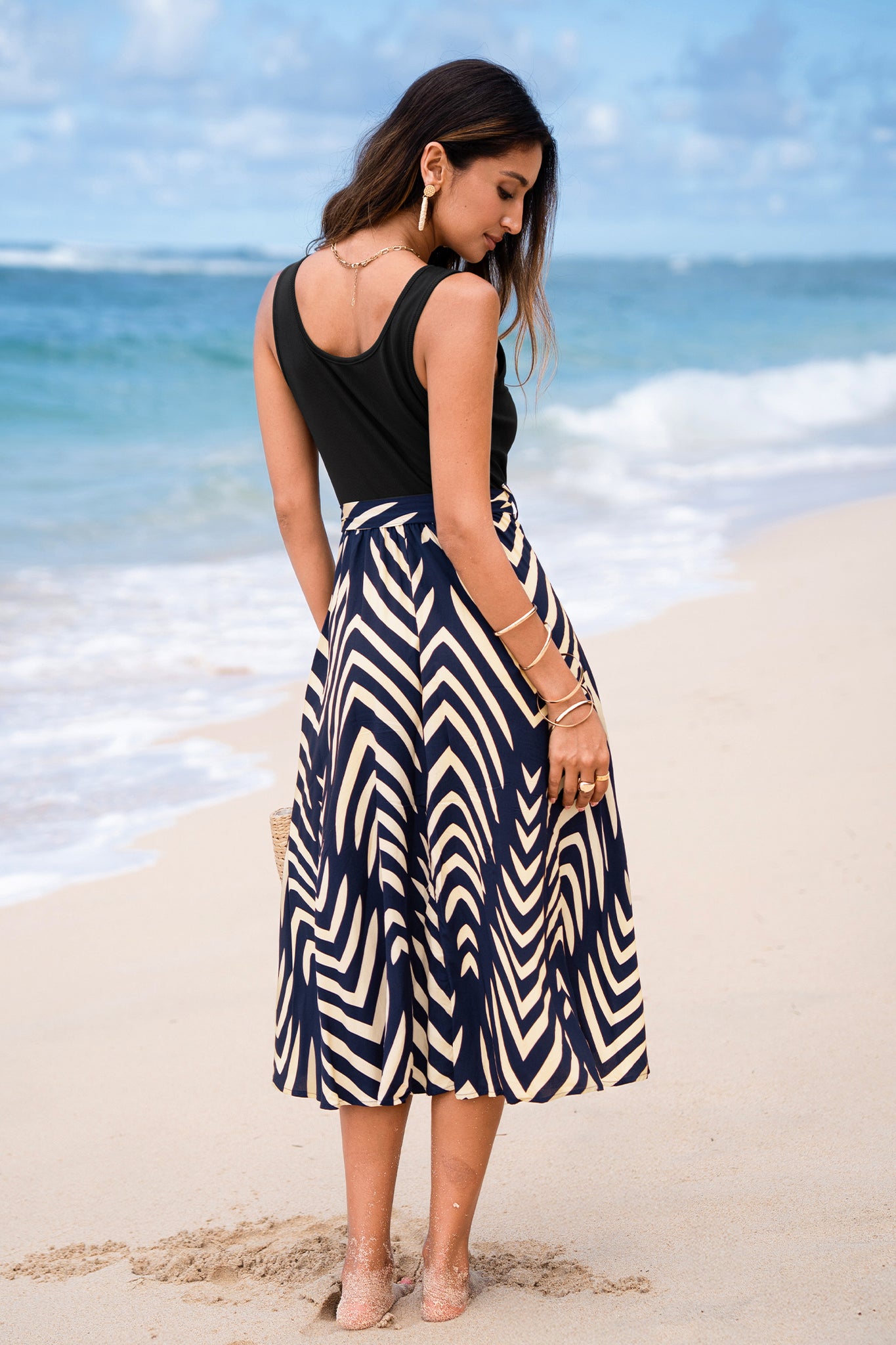 Abstraktes Ärmelloses Midikleid mit Bindegürtel