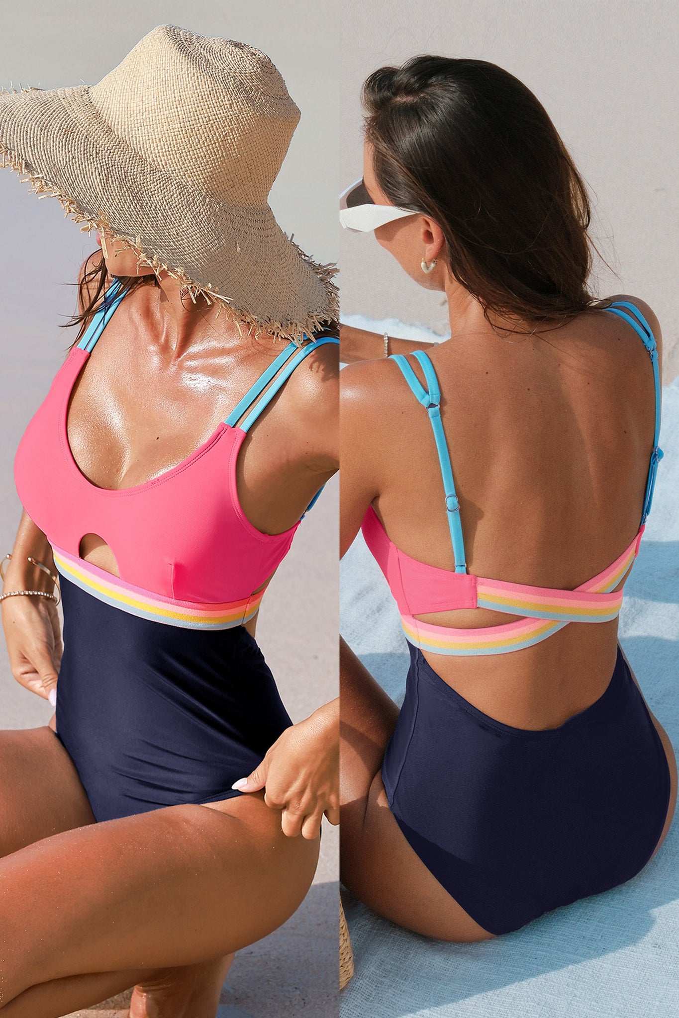 Colorblock Leichter Halt Verstellbare Träger Badeanzug