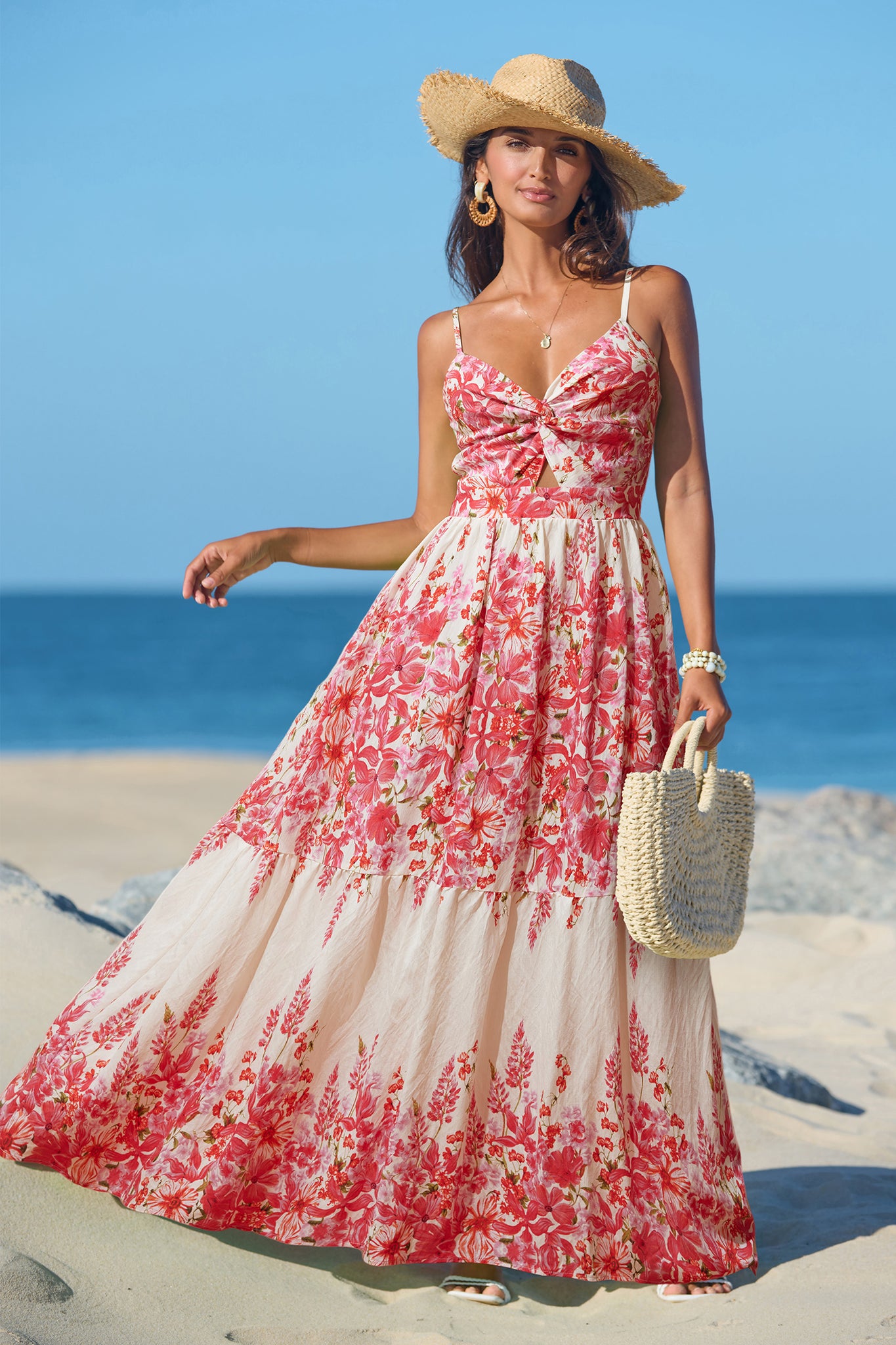 Ärmelloses Blumiges V-Ausschnitt Maxikleid