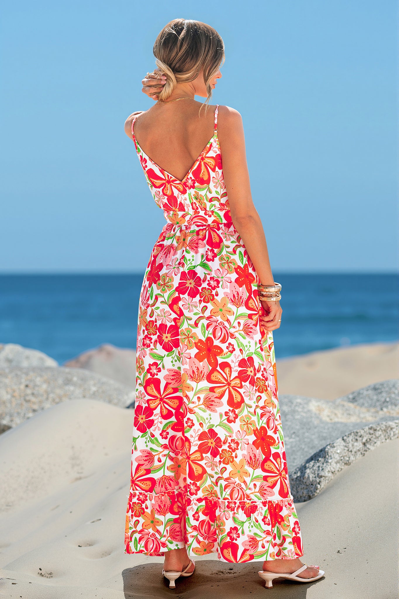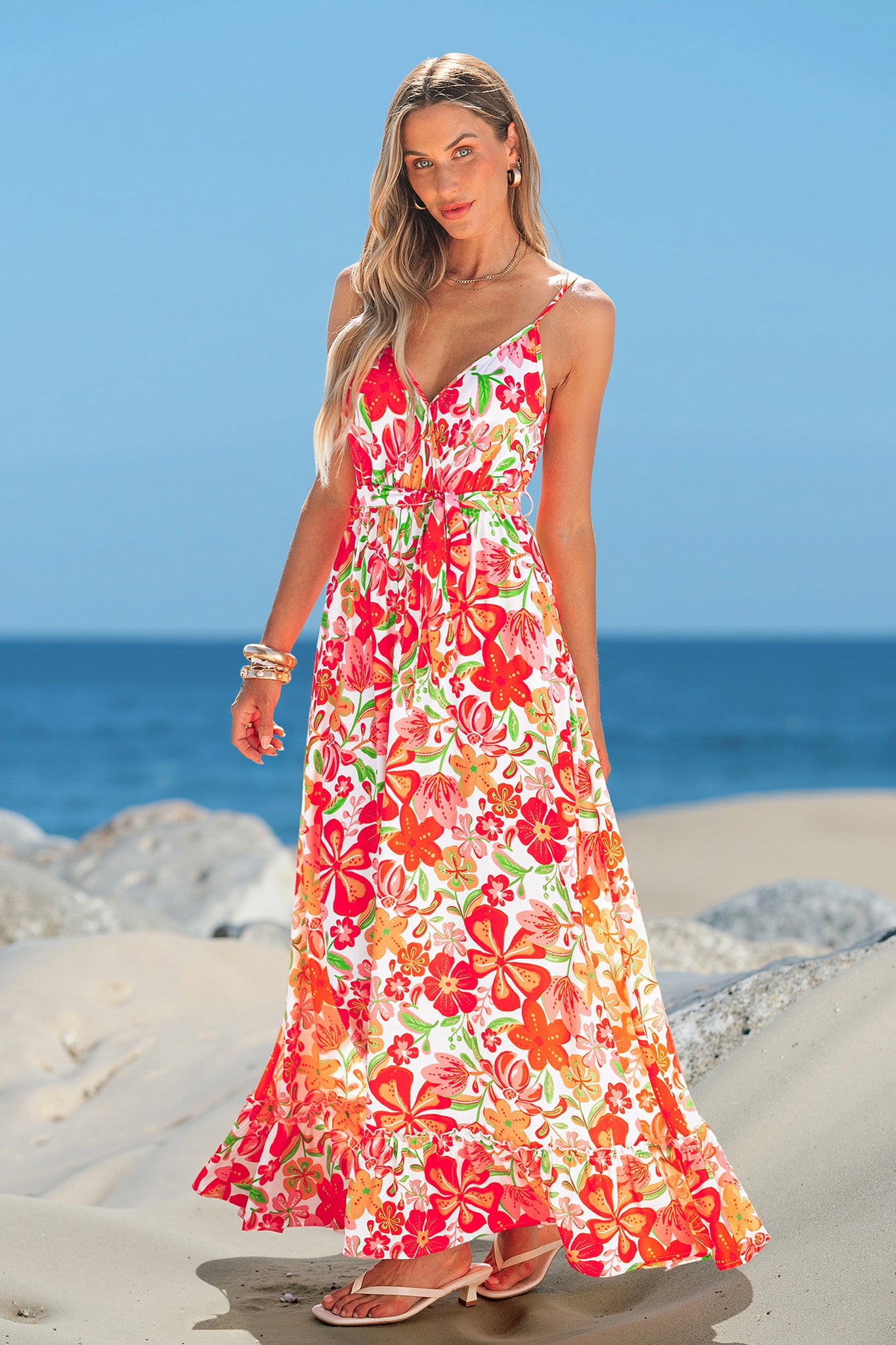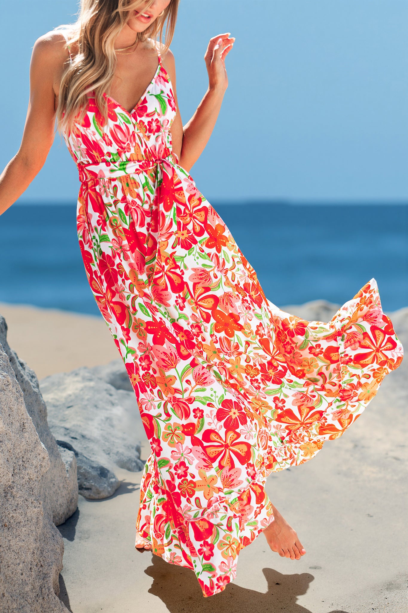Ärmelloses Maxi-Wickelkleid mit Taillengürtel