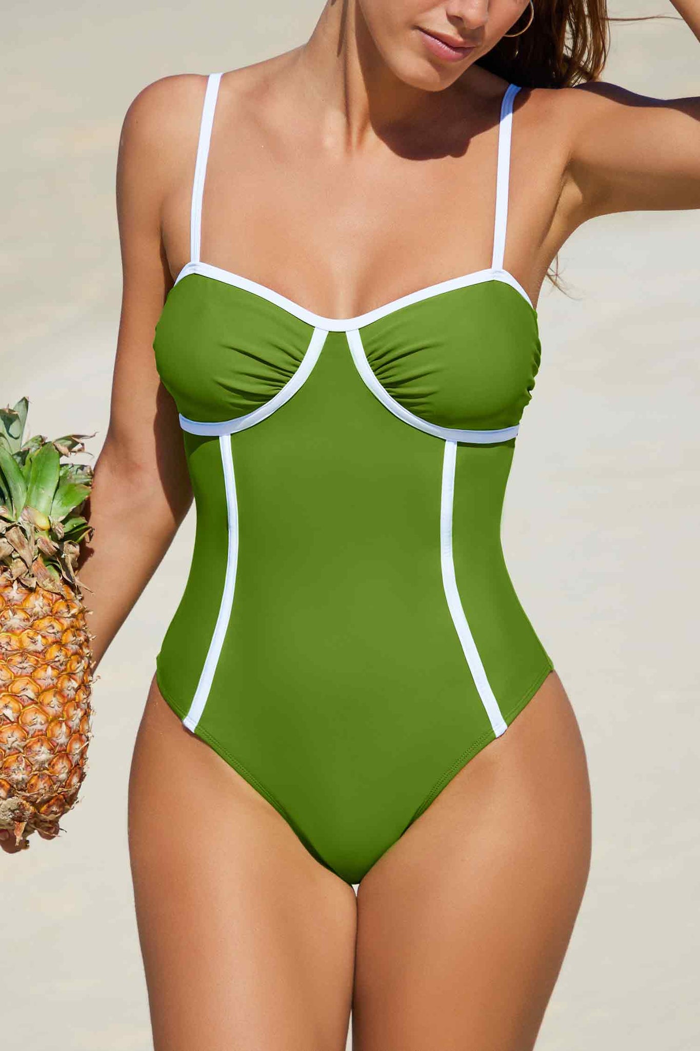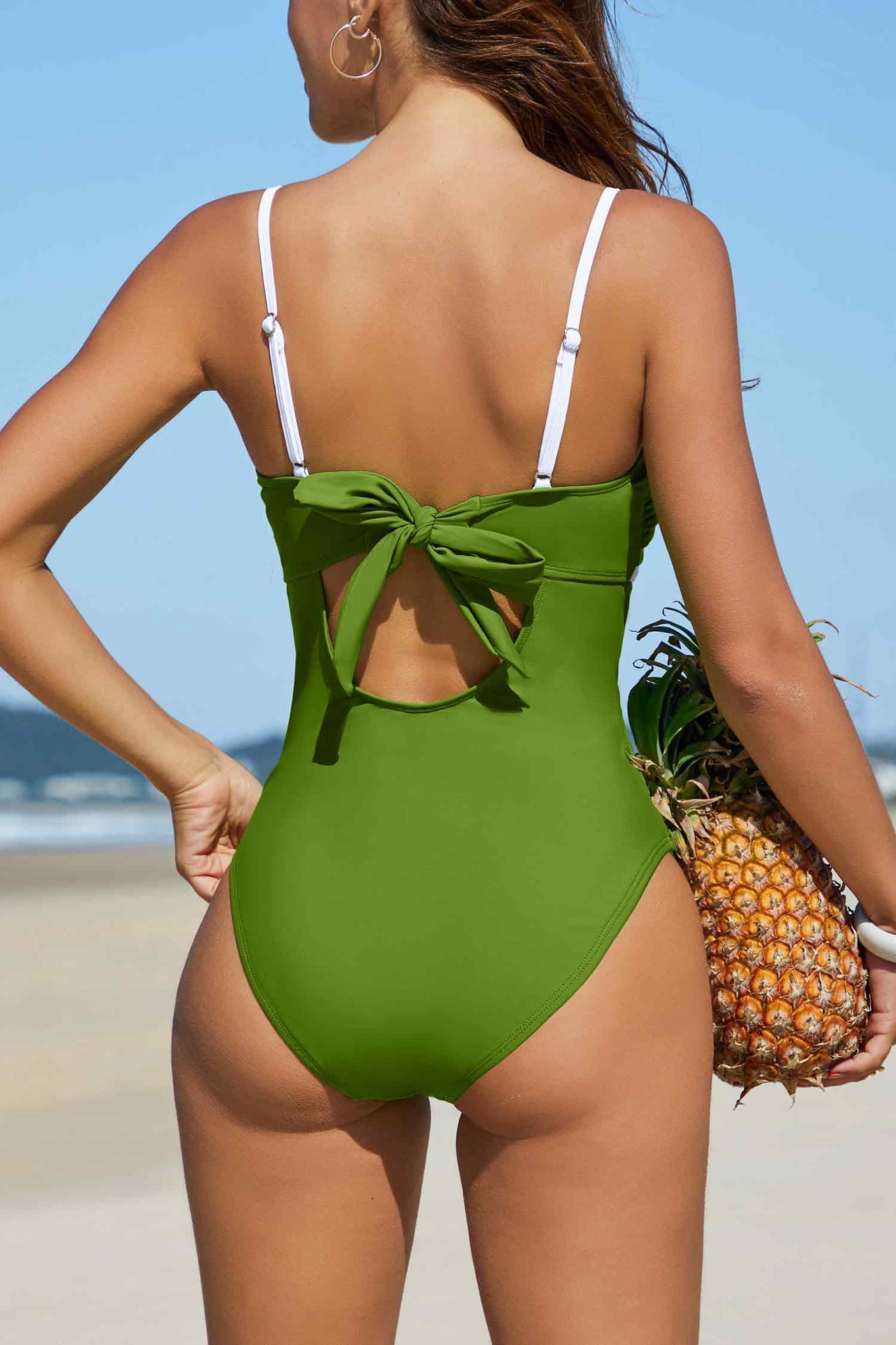 Grasgrüner Badeanzug mit quadratischem Ausschnitt