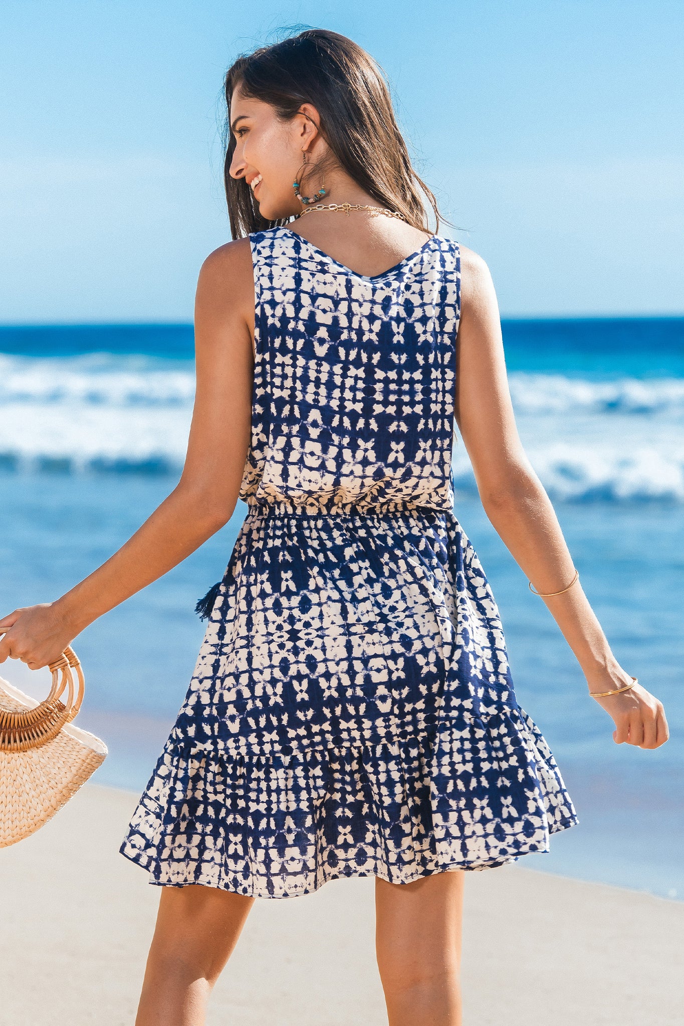 Abstraktes ärmelloses Minikleid mit elastischer Taille