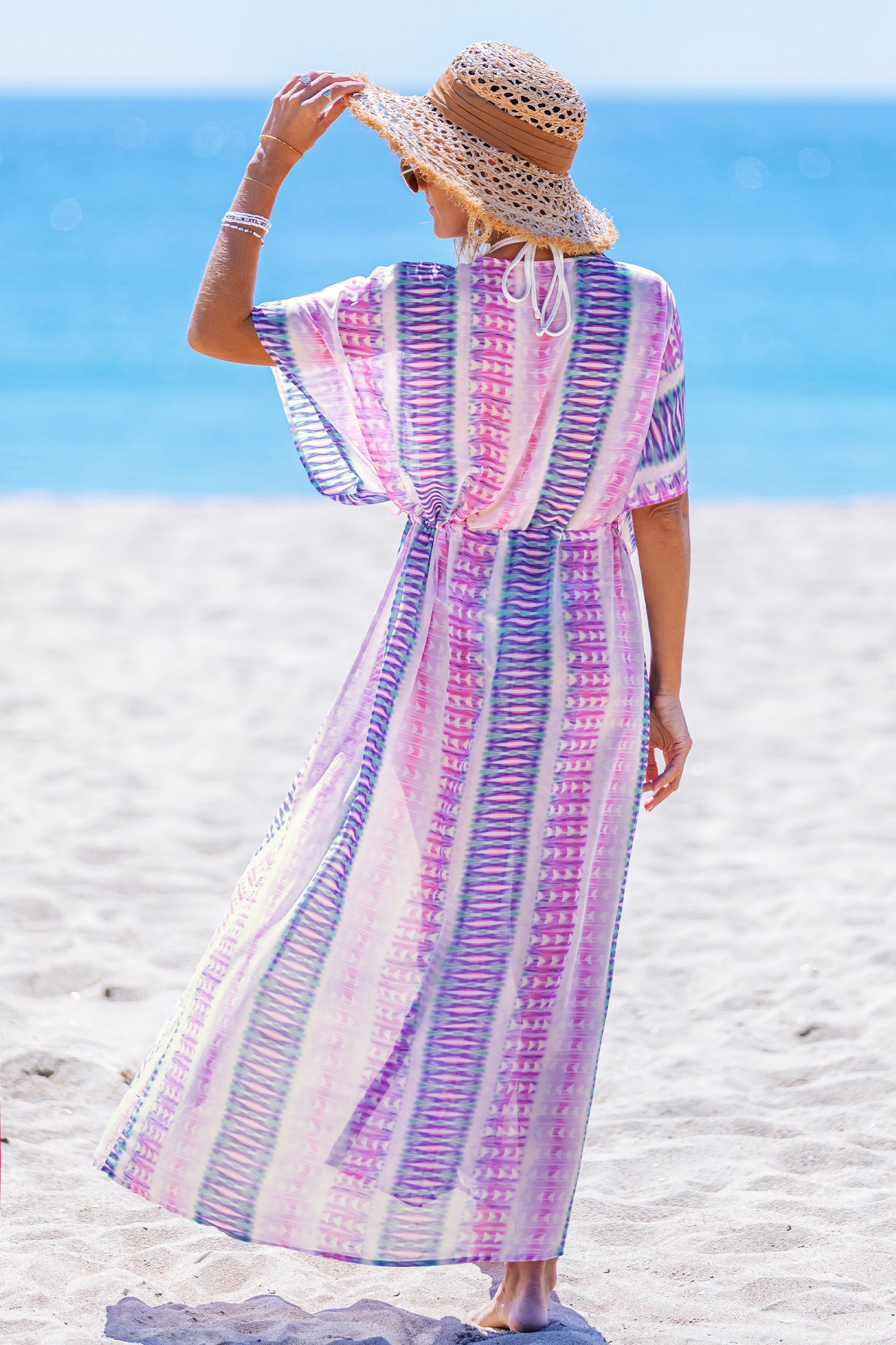 Abstraktes Lila Tiefer Ausschnitt Maxi-Strandkleid