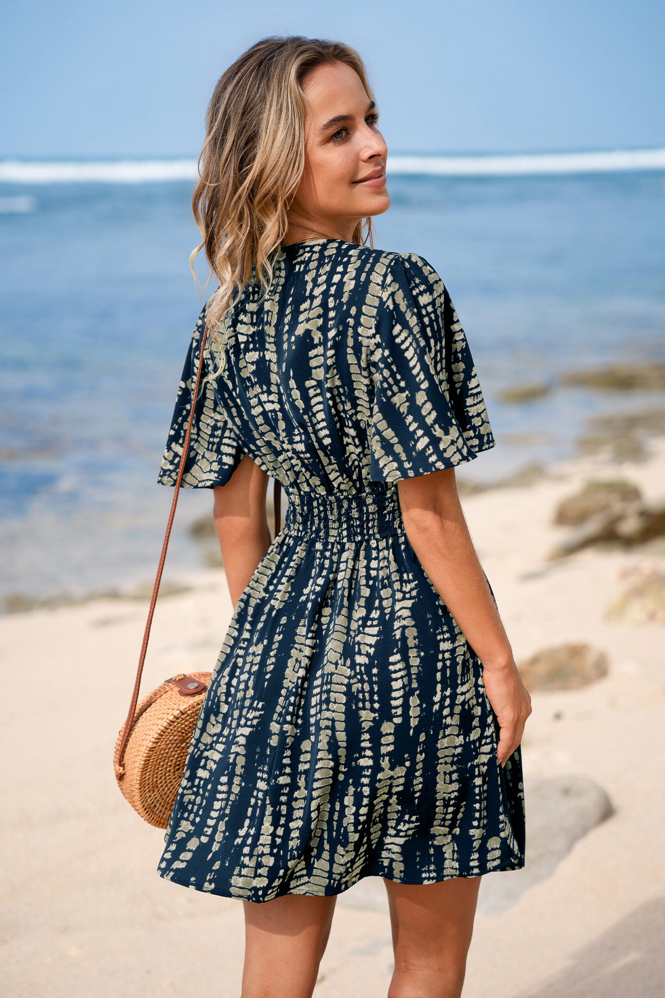 Abstraktes Tiefer Ausschnitt Minikleid