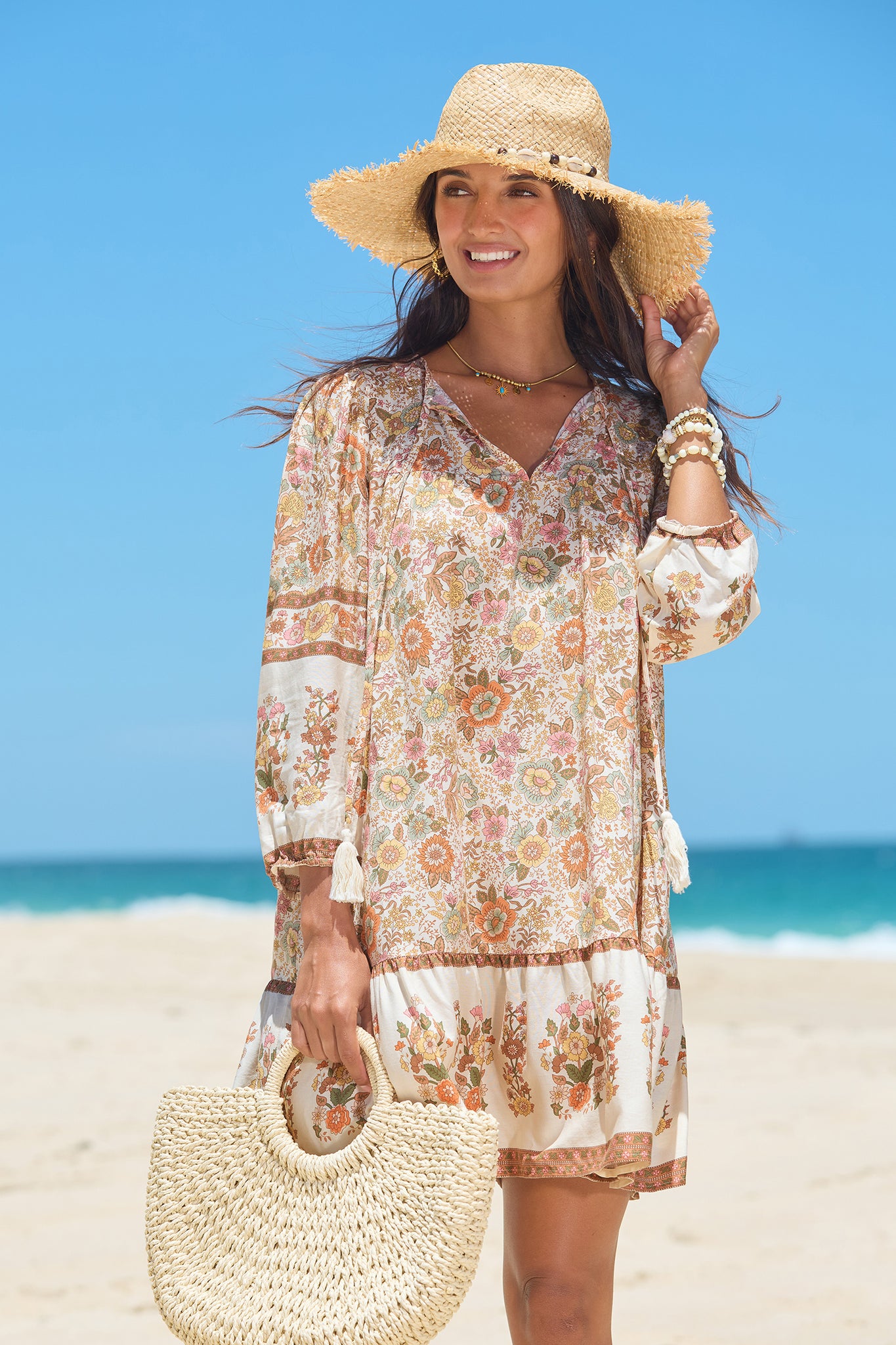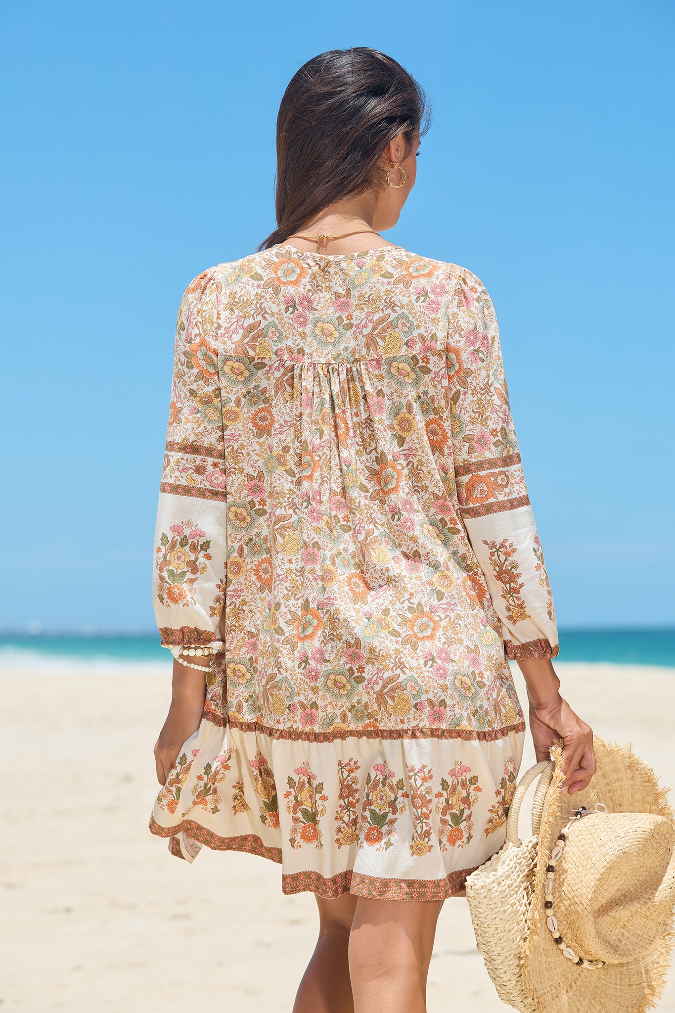3/4 Ärmel Minikleid mit gerüschtem Saum